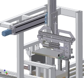 2006: Ein Roboter soll in einer Pressenstrasse Bleche von einer zur andern Presse bringen, oder sie auf ein Wegführband ablegen. Die Robotergreifer sollen bei Produktwechsel automatisch gewechselt und weggelegt werden.