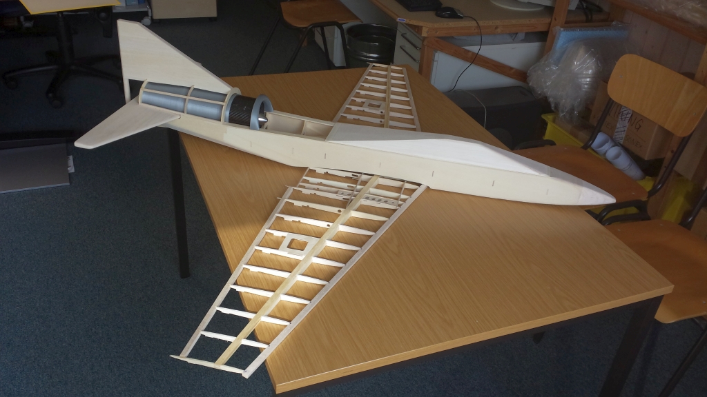 Nun ist die Antriebswahl definitiv: Jetfan 90 mit Motor Leopard LBP 3674-B-1650KV für 6S LiPo. Auch die Einziehfahrwerkwahl ist getroffen. Es wird ein elektrisches Fahrwerk von E-flite, Gröss15-25 eingebaut. Hab mich gleich an die Gondelkonstruktion gemacht: Bau Flügel